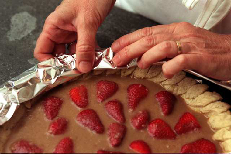 Giấy bạc vẫn tiếp tục truyền nhiệt, nhưng đồng thời bảo vệ bánh khỏi hơi nóng trực tiếp để ngăn phần vỏ bánh, mặt bánh bị cháy.