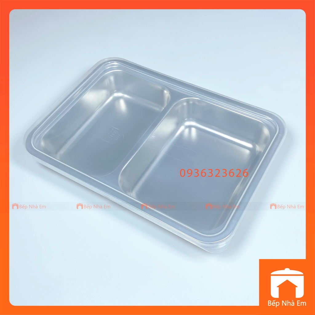 - Khay cơm 2 ngăn sâu lòng chuyên dùng cho cơm văn phòng, bếp ăn công nghiêp, canteen trường học với nắp nhựa tiện dụng cho việc vận chuyển và giữ nóng thức ăn.
