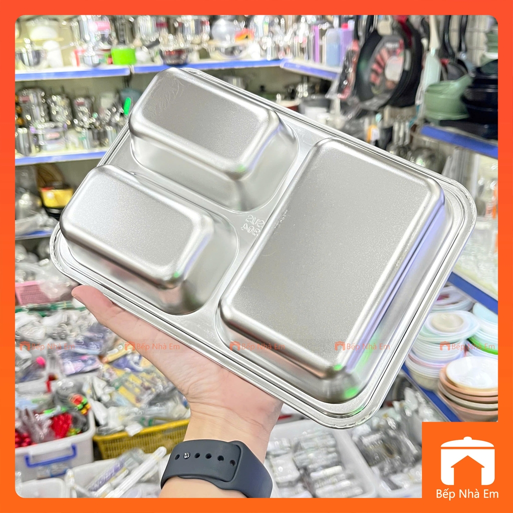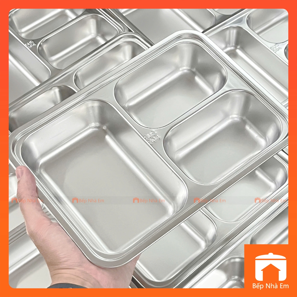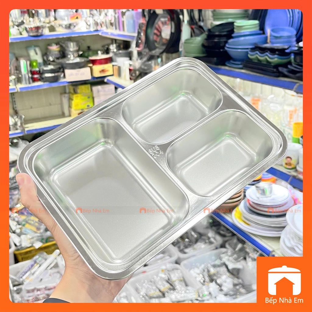 Khay Cơm Phần 3 Ngăn Sâu Inox 304 Cao Cấp - Hàng Việt Nam Sản Xuất