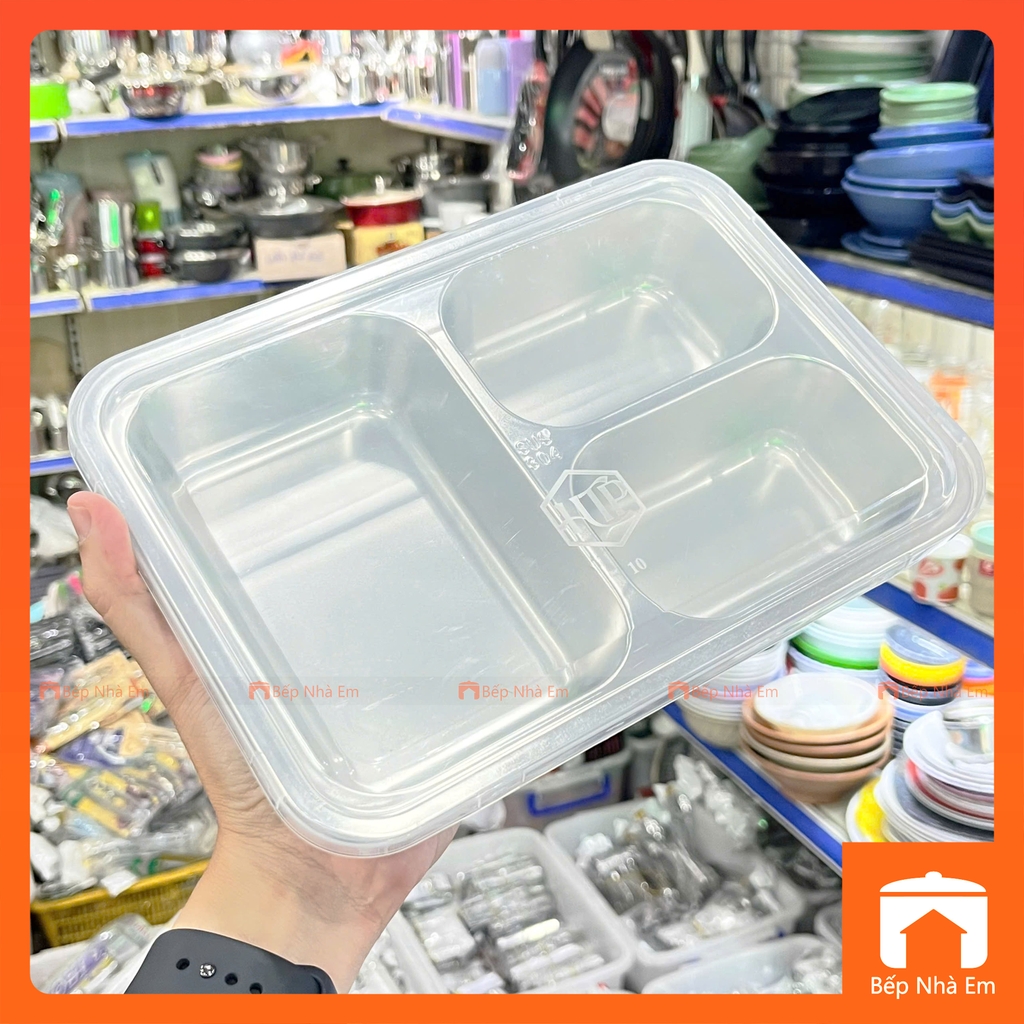 - Khay cơm 3 ngăn sâu lòng chuyên dùng cho cơm văn phòng, bếp ăn công nghiêp, canteen trường học với nắp nhựa tiện dụng cho việc vận chuyển và giữ nóng thức ăn.